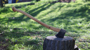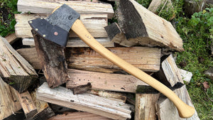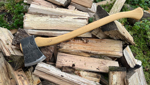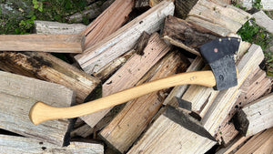 - Axes are hafted by hand, old school with a hardwood wedge.